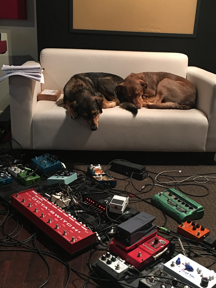 PS:マッカイとレナードは僕が帰ってきて喜んだけれど、僕が持って帰ってきたおやつやおもちゃも本当に嬉しかったみたい。僕が最後にスタジオで作業したときから、セフのペダルボードが3倍ほど膨れ上がってたことを見ても…毛深さに関係なく、ボーイズはボーイズのままなんだね…!それは確実みたい! ;)