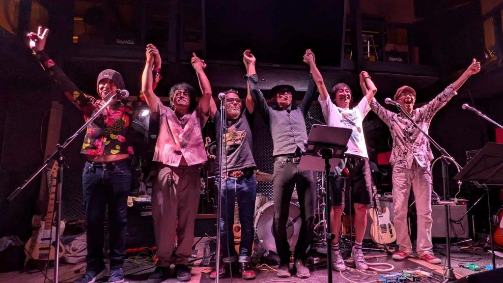 Groovin’との共演だったので、寺さんとこみやんに手伝ってもらって久しぶりの3人セッションも、ラストは全員で赤塚さんをボーカルに迎え「また逢う日まで」で大円団。