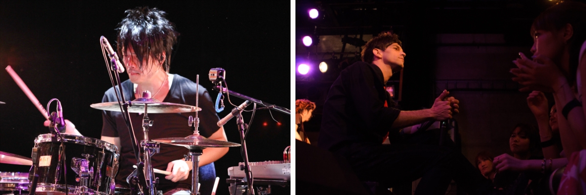 いよいよステージの終幕に向けてラストスパート、その前の景気づけとばかりに、fadeのステージではおなじみであったkanseiのジャックダニエル一気飲みへ。「Tokyo!盛り上がってるか!」いつもと変わらずフレンドリーに、そして元気にフロアに話しかけていたkansei。彼の一気飲みが始まると、その気持ちをあおり、さらにステージを盛り上げるようにのギターがスリリングに舞い、noriyukiruiのリズムが気持ちを奮い立たせた。