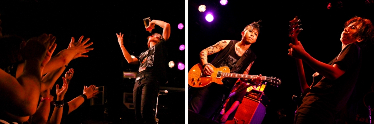 fade!”, “fade!”, “fade!” – as the audiences continued to beg for an encore, the band appeared on the stage again. noriyuki appeared with beer in his hand. He always had put his heart and soul into his performance and appeared to devote himself in it more than anybody else, but that night he sometimes looked relaxed and enjoying the performance calmly. As Jon said “Will you sing with me?!”, “So Far Gone” was started.