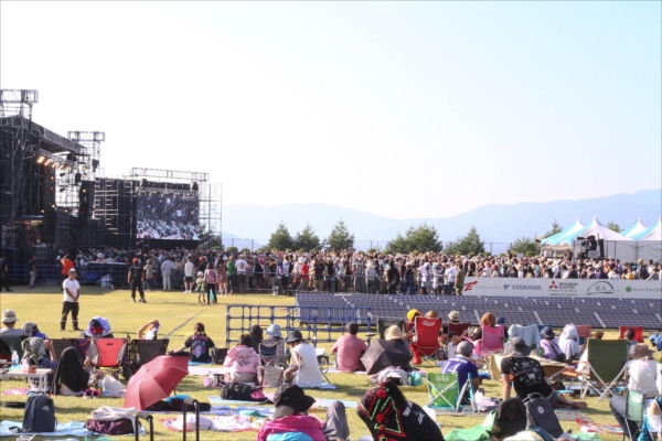 会場全体を通して見ると、ボランティアスタッフをはじめ、どのスタッフも対応が手厚く親切なだけでなく、お客さん同士でも声を掛け合い、譲り合う光景も多く見られた。マナーが良く、心からイベントを楽しむという意識が会場全体に広がっていた印象だ。他のフェスティバルにも行ったことがあるロックファンからは「他のフェスティバルに比べてのんびりしていていい。」というコメントも多くあった。「ソーラーエネルギー」という、このイベントの趣旨がはっきりしていることで、エコに対する意識だけでなく社会的な共有意識が高い人が多く集まっていることが、その要因なのかもしれない。