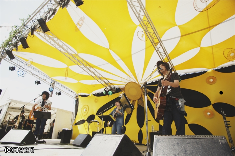 Photoその週半ばまで台風が接近し天候が心配されたが、この日は残暑がぶり返すほどの晴天となり、中津川の空はまるでこの開催に合わせた、まさに「ソーラー日和」といえる天候となった。RESPECTステージより初日のトップを務めた佐藤タイジ(Vocal &Guitar)、うつみようこ(Vocal &Guitar)、高野哲(Vocal &Guitar)の3人によるアコースティックユニット、インディーズ電力の開会宣言によって、いよいよ開幕。