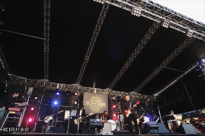 そして、2日目28日の昼間の目玉はなんといってもTHE King ALL STARS。若大将こと加山雄三を中心として佐藤タイジ(Guitar)、名越由貴夫(Guitar)、古市コータロー(Guitar:THE COLLECTORS)、ウエノコウジ(Bass:the HIATUS)、武藤昭平(Drums:勝手にしやがれ)、高野勲(Keyboards)、山本健太(Keyboards)、タブゾンビ(Trumpet:SOIL&”PIMP”SESSIONS)という豪華メンバーで構成されたスペシャルバンドだ。