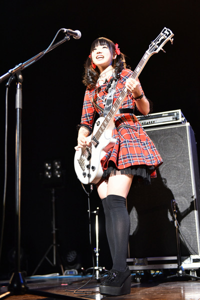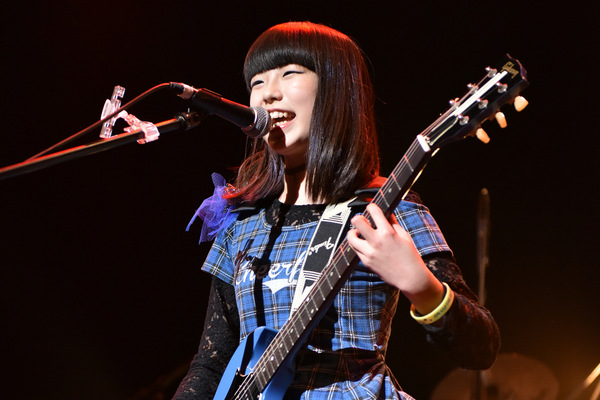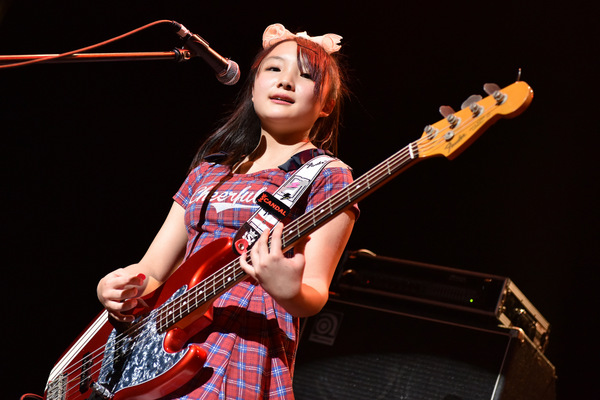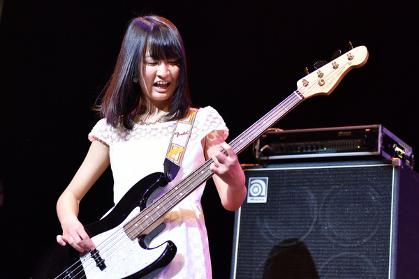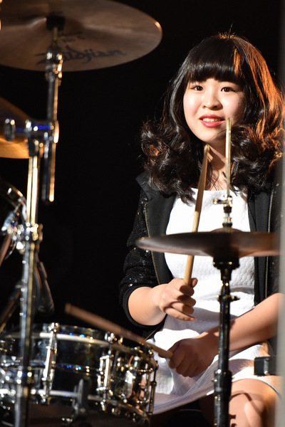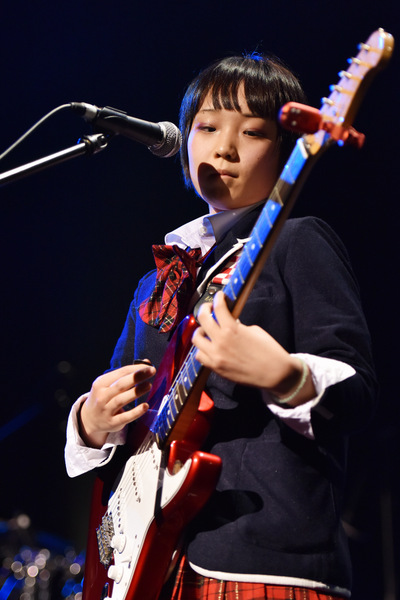 ラスト・7組目は神奈川の中学3年生、winry’s(ウィンリーズ)。昨年のコピバンコンテストにエントリーした軽音楽部の先輩から譲り受けたという衣装で験担ぎ。バンド歴3年、中学生活の集大成として臨むステージは気合十分。「大好きな曲なので体が乗る」ということで選曲した「カゲロウ」(1stアルバム『BEST★SCANDAL』収録)を披露。安定感抜群の演奏に大人びたスカートも相まって、妖艶な雰囲気で会場をヒートアップさせた。