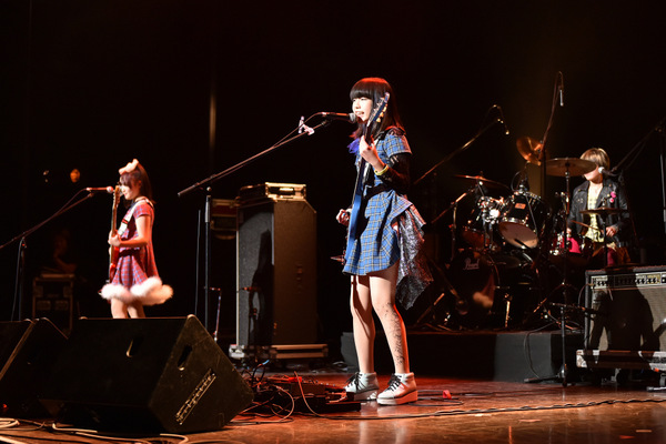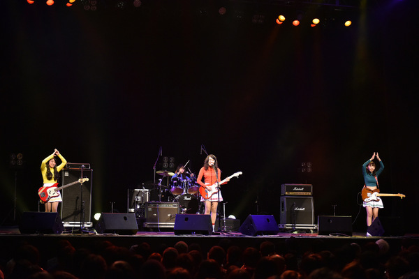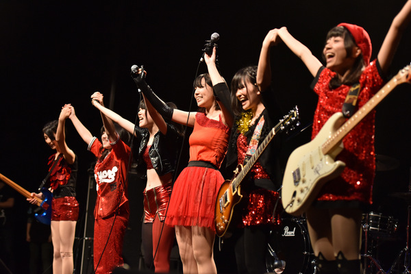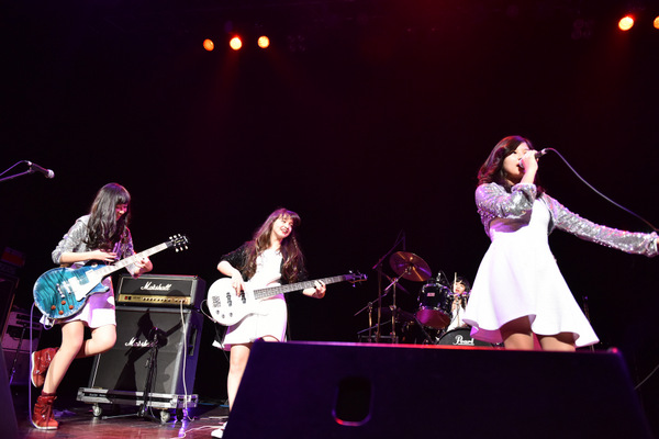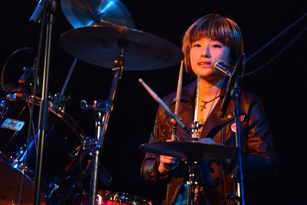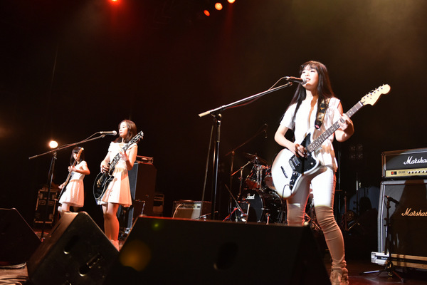 序盤はアットホームな空気が支配していたが、そのMCをきっかけに、にわかに空気が変わる。3曲目「Image」では容赦のない、攻めたステージ。観客からはこの日一番の大歓声が上がる。4曲目「お願いナビゲーション」ではRINAのドラムが野性的にビートを刻む。MAMIのギターソロもスパークする。