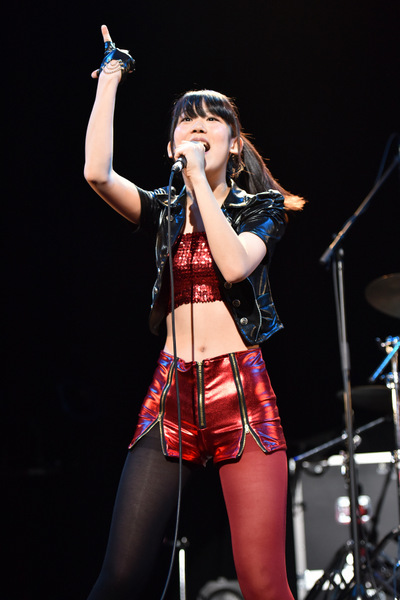 そんな、ガールズバンドの登竜門となりつつあるこのコンテストを牽引していくのは、今ステージに立つ、SCANDALの4人だ。きょう出演のファイナリスト7組や、惜しくも敗退した全国のガールズバンドに捧げる、と前置きして演奏するのは「Your song」!サビでは「みんなの声を聞かせて!」とHARUNAが客席にマイクを向け、会場が一体となって大合唱。そのまま、観客だけにボーカルを委ね、演奏は進む。この「観客なしには曲が成立しないライブ」もSCANDALのライブの大きな魅力の一つだ。