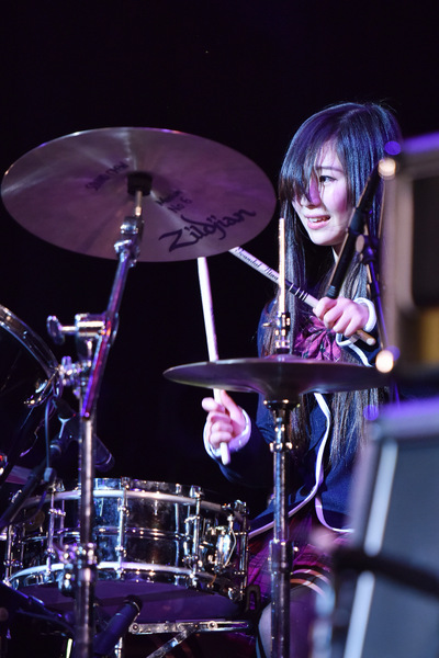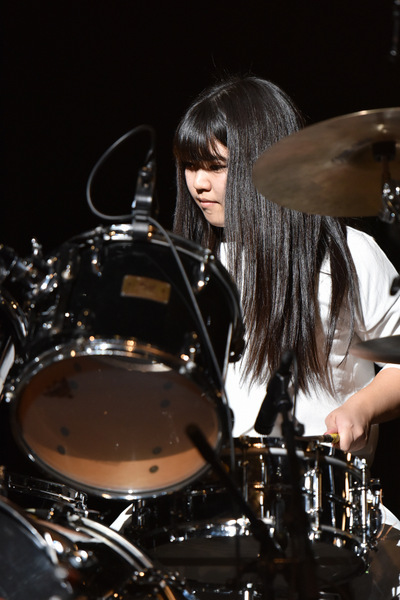 6組目は中3と中2のメンバーで構成された今大会唯一の3ピースバンド、ひかほりっく。2年前のファイナリスト・KAHORI(Guitar & Vocal)を含め、昨年までそれぞれ別のバンドでコンテストに出場していた3人は、コアなファンに人気の「Hi-Hi-Hi」(2ndアルバム『TEMPTATION BOX』収録)で勝負。個々のテクニックが卓越しているばかりか、グルーブもすさまじく、終盤のソロ回しは圧巻!一段と大きな拍手が起きる。
