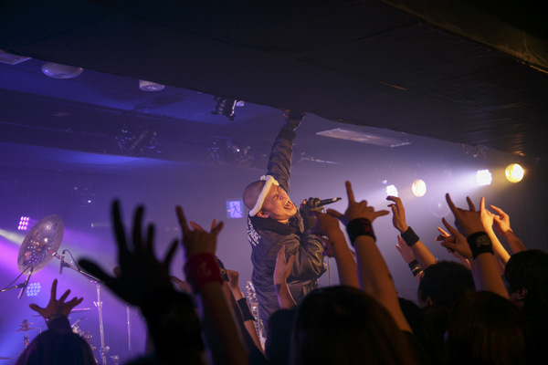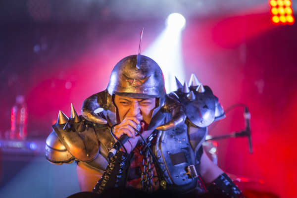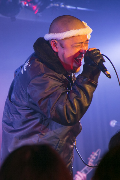 「始まったぞ~」とシャウトしながら1曲目から鉄兜を脱ぎ捨ててしまった冠徹弥はこの時点で既にめちゃくちゃ楽しそうだ。続く「マスカラ」では満員の会場がモッシュピットと化す。「哀罠メタル」のラストではお得意の顔芸を披露するも、肝心な照明のタイミングが全く合わないというハプニング(むしろわざとの演出?)もありつつ、オーディエンスの愛ある”ハゲ”コールを一心に受ける。