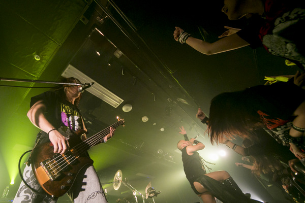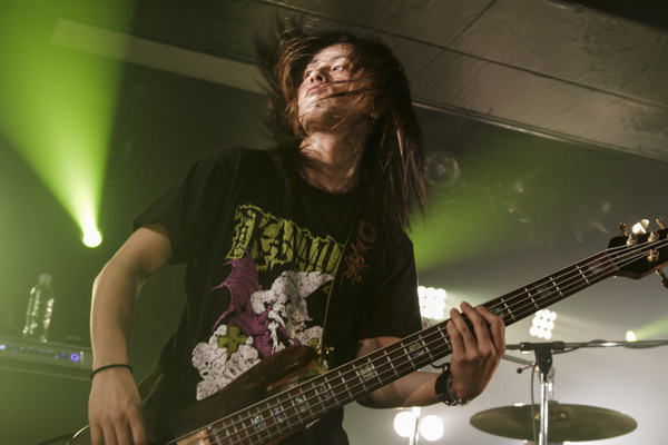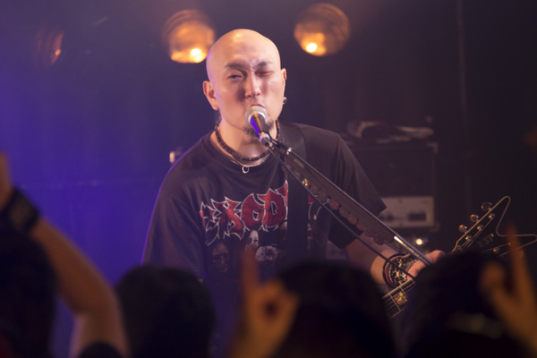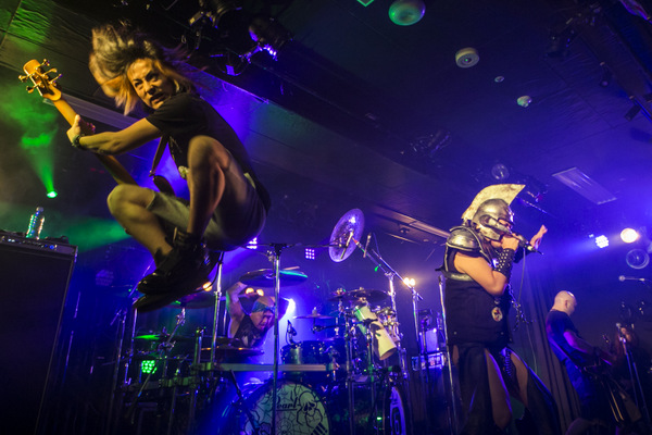 「今日は暴れる曲しか用意してません!世界一楽しい箱にしましょう。やれんのか?かかってこいや!」と威勢のいい煽りのあとは”すいませーん”のフレーズにあわせてお辞儀のようなヘドバンを繰り返す「ヘッドバンギン謝罪行脚」。曲のかっこよさと自虐的でセンスあふれる歌詞のオンパレードで会場は熱気と笑いの渦に包み込まれる。
