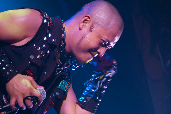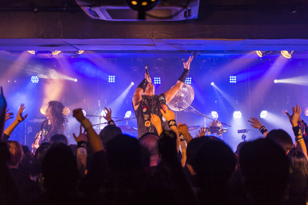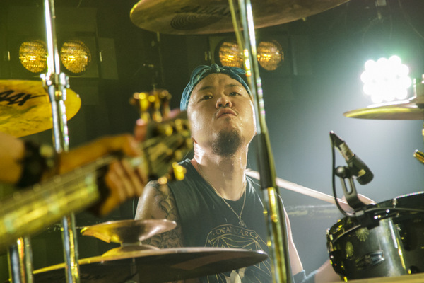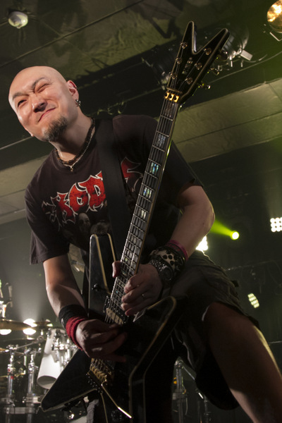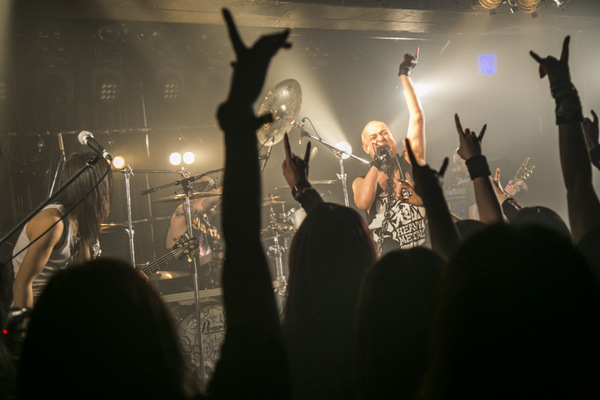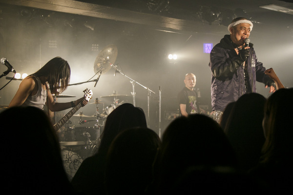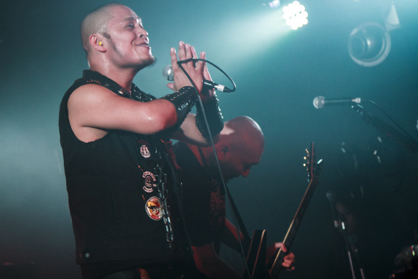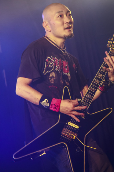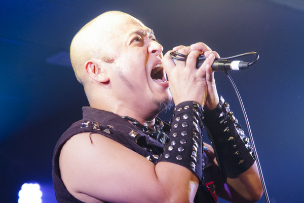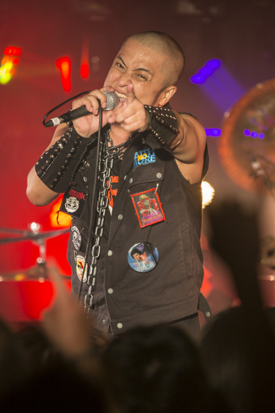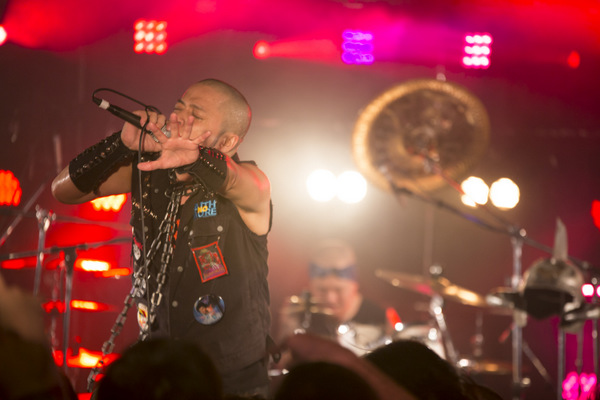 さきほど1本ライブを終えたバンドとは思えないイキの良さで「鉄の心臓」「なんで言うたんや」など、普段ではなかなか聞けない、隠れた名曲揃いのアツいメタルサウンドが会場を再び熱くする。決して若いといえるバンドではないのに、パフォーマンス、迫力ともに全く衰えないのが逆に恐ろしい。