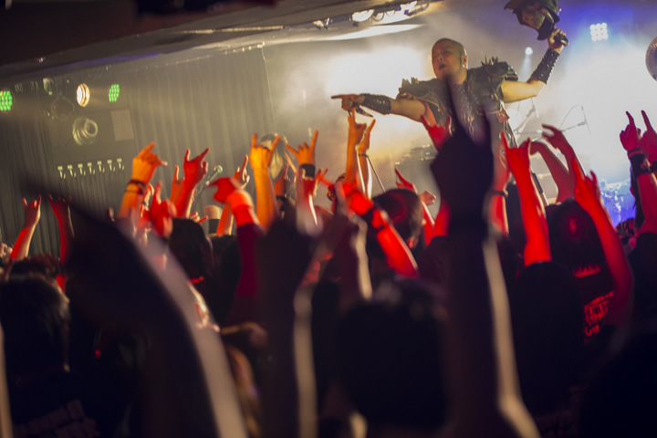 見ているだけでも入り込んでしまって消耗するバラードの後に畳みかけるラストスパート。裏公演本編ラスト、スタートから換算すれば既に4時間超に及ぶ大舞台の大締めは、最高にメタルで最高にキャッチーな文句なしの名曲「傷だらけのヘビーメタル」。まさに大団円にふさわしく、満場の会場は大きな声援と高く掲げた拳、ふらふらになりながらのヘドバンで応えたのだった…。