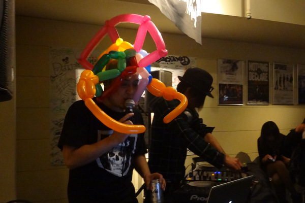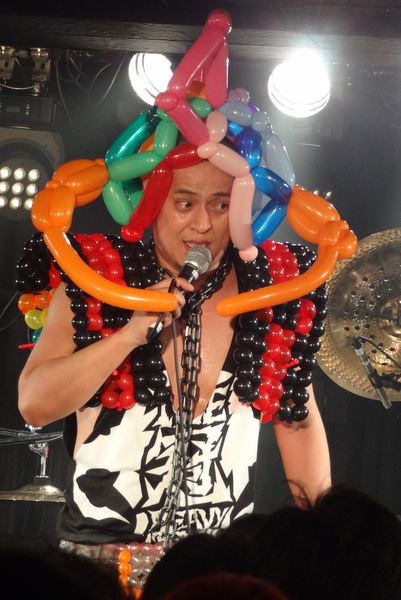 アンコールに応えて出てきたのはまさかのバルーンアートで作られたカラフルな風船兜!本人曰く、鉄兜は重過ぎるので軽量化をはかったのだそうで、今年で44歳のおじさんにしてはかなりファンシーな見た目になったところでアンコールがスタート。