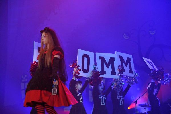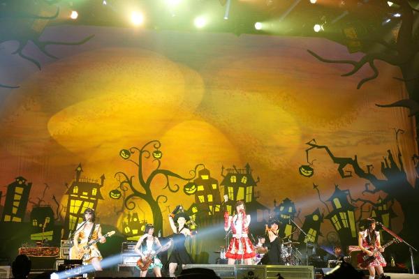 続いて英語のインフォメーションと共に登場したのはTommy heavenly6!赤と黒のゴシック風でアリスのようなワンピースに身を包みステージへ登場すると「トミーかわいい!」と絶賛の嵐。囚人服姿やゾンビ姿のバックバンドやダンサーを従え、サビがポップな「Never Ending Party Night」やハードな「CALL ME PRINCESS」を独特な甘い声で披露。中でも「Lollipop Candy ♥BAD♥girl」はメロディの転調が多く不思議でいながらもサビの盛り上がりが力強くインパクトの強い曲。途中でチアリーダーの眼帯ガールズや白いひげの小人がでてきてホラーな童話のような世界観を魅せつける。「みんなと心を1つにできればと思いを込めて歌います」とラストソング「I’M YOUR DEVIL-Halloween Remix-」を甘く力強く歌いきった。全体的に激しいハードなナンバーをMCも少なく淡々とどこか冷めたような感じに甘い歌声で歌いきる。その独特の存在感がハロウィンらしさを更に盛り上げていた。