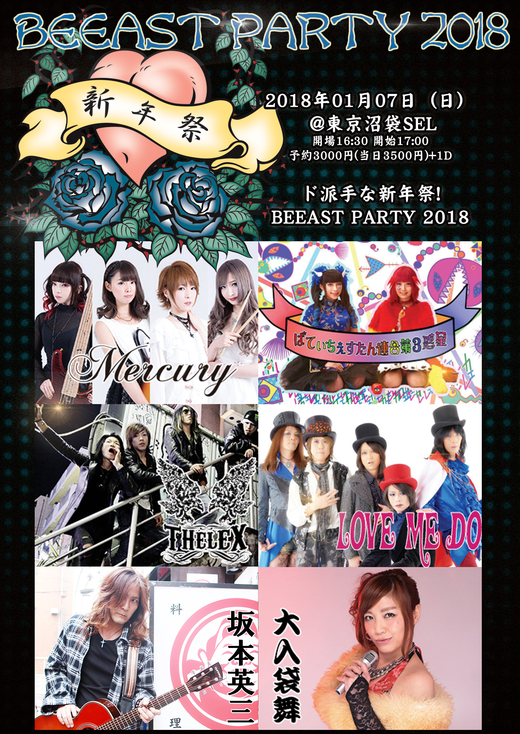 2018年1月7日、東京・沼袋SELにて開催いたしました『ド派手な新年祭!BEEAST PARTY 2018!』は、おかげさまで盛況のうちに終了することができました。ご来場ありがとうございました。また遠方・海外の読者の皆様、ご声援ありがとうございました。