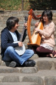 1960年代のフォークミュージック、クラシック、ポップス、アパラチアン・オールドタイミー、ブルーグラスなどを、ハープとともに歌ったり、それをさらにフィドルとドッキングさせてアイリッシュ・トラッドへひろげていくなどして、いまの時代に再び甦らせるという、デュオ独自のサウンドを創り出した。そのエンタ-テイメント性溢れる音楽とステージをぜひ多くのひとに聴いてもらいたい。