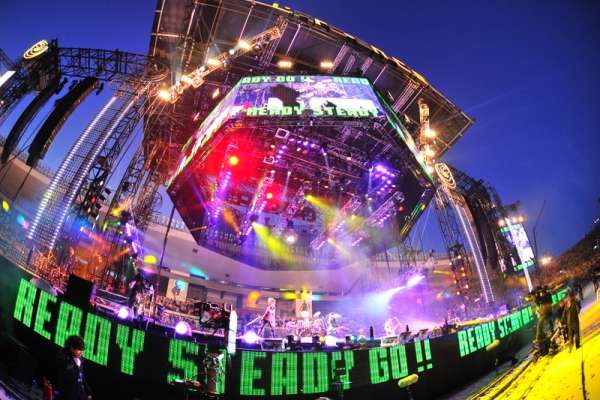 迎えた初日。会場に足を踏み入れた人の多くが度肝を抜かれたはずだ。場内を取り囲む客席は360度開放型、ステージ背後のメインスタンドにまで観客を収容したライヴは国立競技場史上初のことである。驚きはまだある。再び国立競技場に結集した今回の公演は、それらを凌駕する未曾有の演出が待ち構えていたのだから。