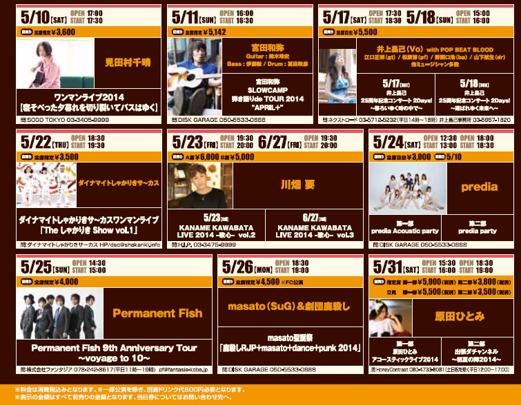 ※公演日時および出演者名表記はライブハウス提供の情報をそのまま掲載しています