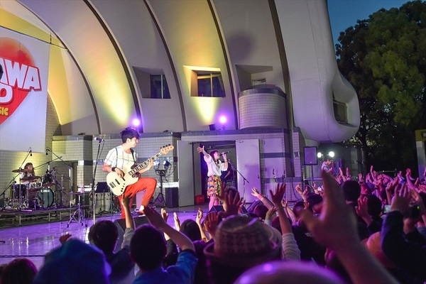 そんな人気のイベント最終日の終盤に、7!!は「ハイサイ~!」と元気いっぱいの掛け声で登場。「メロディ・メーカー」のほか、映画『今日、恋をはじめます』のテーマソングとしても人気の「弱虫さん」や、ヒット曲「バイバイ」など合計5曲を披露。会場を大いに盛り上げた。