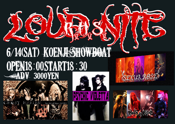 そして2DAYSの二日目となる6/14(土)は、Show Boatのラウド系恒例イベント「R.H.S.LOUD NITE」への出演となる。こちらは関西で人気急上昇なSEXUA ROSE、ダーク系ベーシスト&DJのtAk率いるPsychic Violetta、さらにGHOST HARLEMとの共演になる。