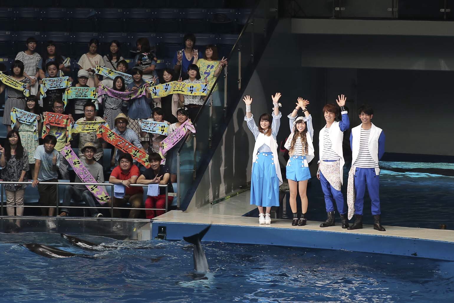また、ショーのラストにはメンバーの合図で、の楽曲にあわせてイルカが合唱したり、一斉にジャンプしたりと、まさに、イルカと7!!の圧巻のエンターテイメントショーとなった。