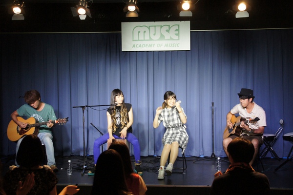 そして最後には、メンバーからのサプライズプレゼントということで、アコースティックライブを実施。翌・30日にリリースされる9thシングル「スタートライン」を生披露すると、MAIKO(Drums)からの提案でさらにもう一曲やることに。参加者からのリクエストで8月13日発売の2ndアルバム『STARTLINE』にも収録されている「メロディ・メーカー」が披露された。