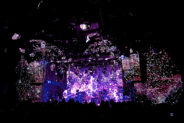 新作に収録されている「ナツノマボロシ」からライブはスタートし、途中にエレクトロを取り入れ、ダンサブルに会場をゆらすゾーンや、男女ツインボーカルを活かしたコーラスが会場に凛と響くアコースティックゾーンなども盛り込みながら、全16曲を演奏。会場にはランタンが飾られていたり、ステージ中央には巨大ミラーボール、また会場全体を使った演出など、サウンドのみならず魅せ方にもシナリオアートらしい趣向をこらした、文字通り初めてのワンマンライブは終始静かな熱狂に包まれた。