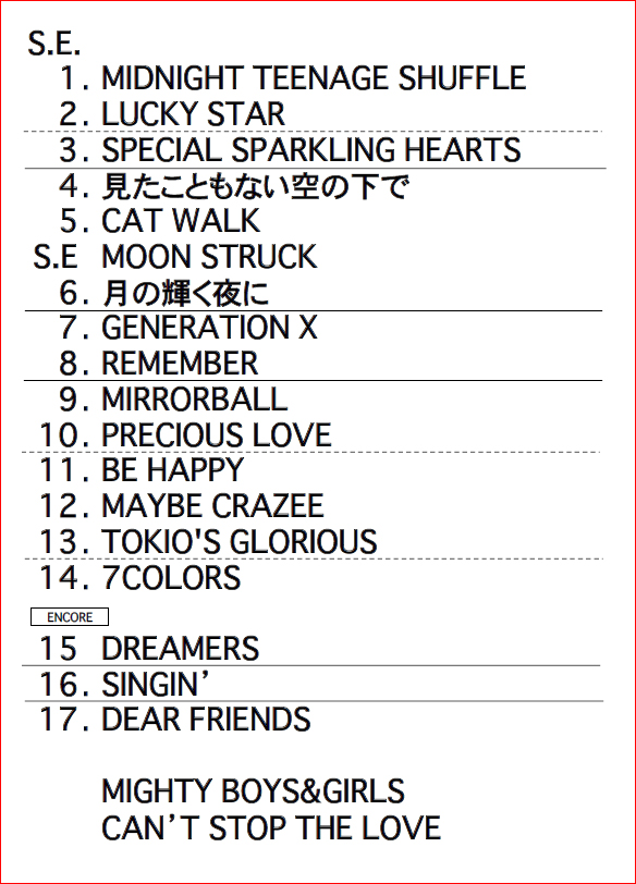 ダブルアンコールでは「mighty boys & girls」、まだまだ愛は止まらないよ!と叫んで歌った「can’t stop the love」の2曲を演奏。ツアーファイナルは幕を閉じた。