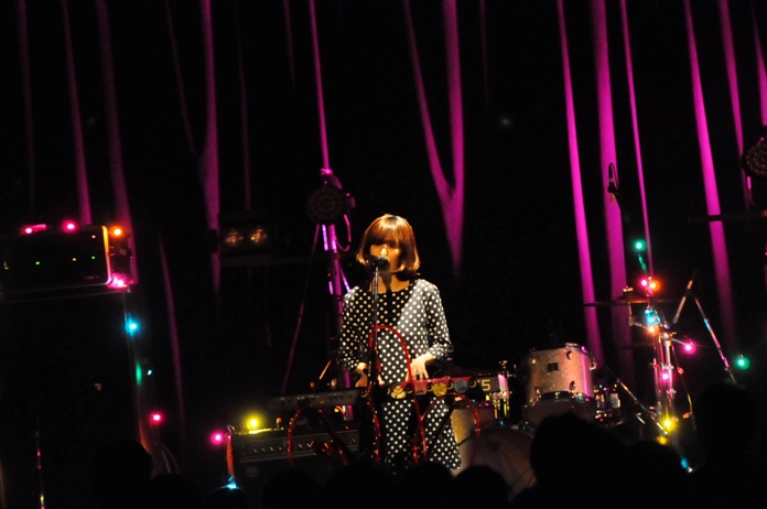 この日は、淡いブルーの照明の中、白いワンピースでステージに登場し、「No Man’s Land」、「Qujira」を披露。続いて「nude fish」では、独特の歌詞とメロディーからなる想像性豊かな世界観で観客を引き込んでいった。