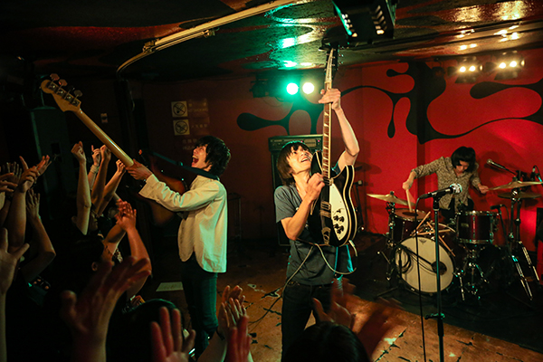 そんな2組のイベントとあり、会場は超満員。期待と熱気があふれる中、myeahnsのシングル収録曲「no title」で幕を開けた。「アメイジング・グレイス」など人気ナンバーの合間に新曲の「ファンクラブ」や「アドバルーン」も交えつつ、後半は盛り上がること必須の鉄板ソング「デッカバンド」「バカは休み休みYeah」「恋はゴキゲン」で一気に駆け上り、観客は歓声を上げながら飛び跳ね拳を突き上げていた。