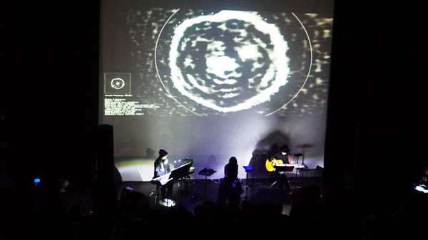 Aimer_kanazawa1ライブにはAimerが非常に感銘を受けたという「ALMA MUSIC BOX」も織り交ぜられた。これは、南米チリの砂漠に建設された史上最大規模の電波望遠鏡「アルマ望遠鏡」がとらえた、寿命を迎えようとしている星「ちょうこくしつ座R星」から送られてきた電波データをオルゴール盤に置き換えたアート作品で、計70枚のオルゴール盤に「死にゆく星のメロディ」が刻まれているという。