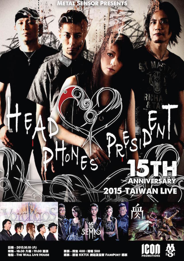 日本を代表するヘヴィ・ロックバンドのHEAD PHONES PRESIDENTが、今夜10月10日(土)台湾のTHE WALL LIVE HOUSEで行われる”HEAD PHONES PRESIDENT 15th Anniversary 2015 Taiwan Live”にて15周年記念アルバム「altaration」を先行発売する。また、19時からのライブの模様はストリーミング配信される。ストリーミング配信のアドレスは、HEAD PHONES PRESIDENTのオフィシャルのSNSにて公開の予定なので、HPPファンは要チェック!!