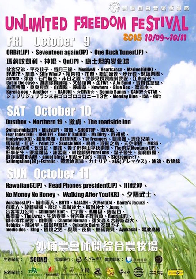 そして、翌日11日(日)は、台湾内外から250組のアーティストが台湾・台中に集まり開催される”UNLIMITED FREEDOM FESTIVAL”にメインアクトで出演。