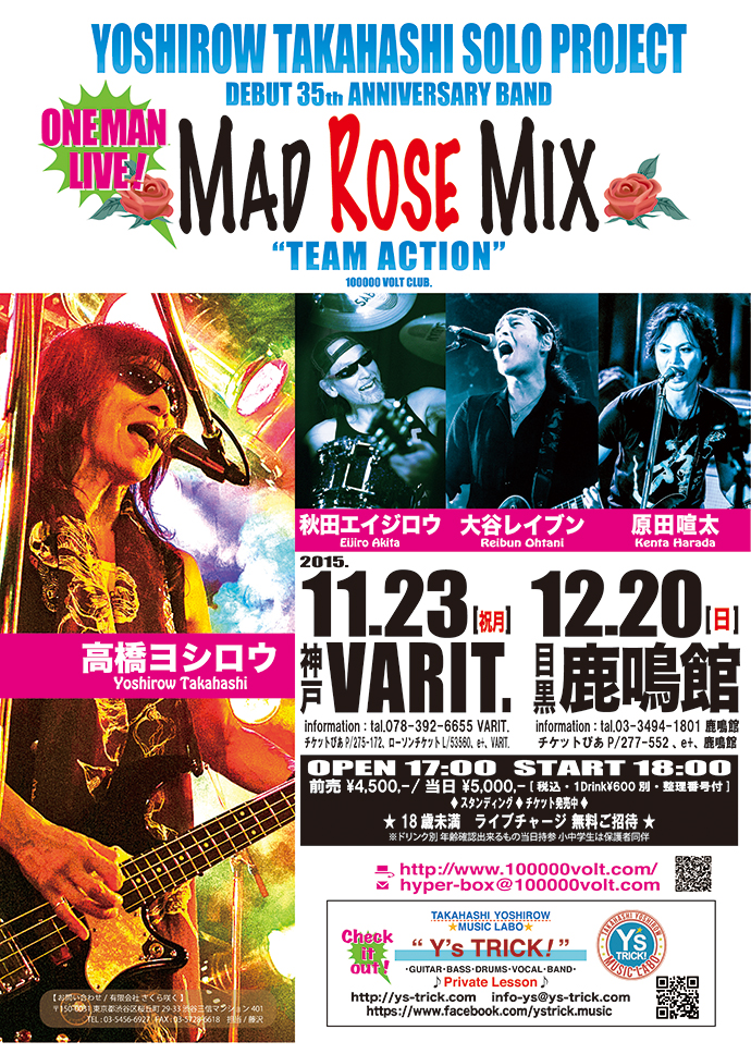 ●チケット料金 : 4,500円(税込み)+1drink