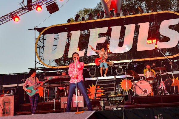 その後は「大阪ストラット」、「バカサバイバー」、「ええねん」など、アッパーな楽曲が続き、会場のテンションもあがる。「大阪ストラット」では、恒例のウルフルケイスケ(Guitar)による“六甲おろし”が披露されると大量のジェット風船が空に舞った。綺麗な光景である。すっかり陽も暮れたステージ上から、本編最後の曲となった「いい女」のイントロが鳴り響くと、客席からは大きな歓声が起こった。本編は計22曲を披露し、幕を下ろした。