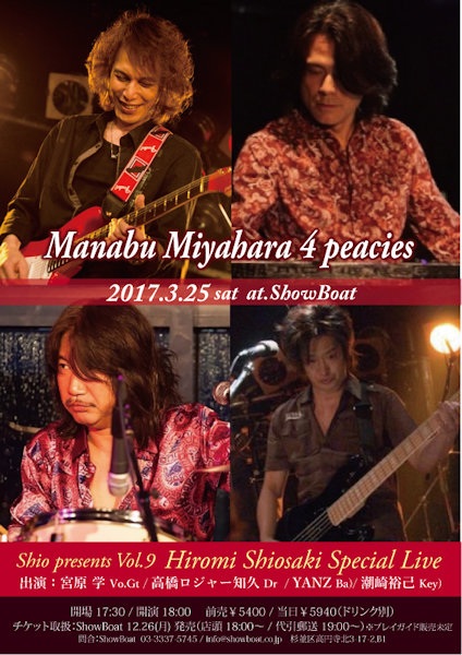 また、2017年3月25日(土)には宮原学(Vocal & Guitar)、高橋ロジャー知久(Drums)、YANZ(Bass)、潮崎裕己(Keyboard)の4人による『manabu miyahara 4 pieces』のライブが7年ぶりに開催されることも決定した。いずれもチケットは高円寺Show Boatの店頭にて発売中。