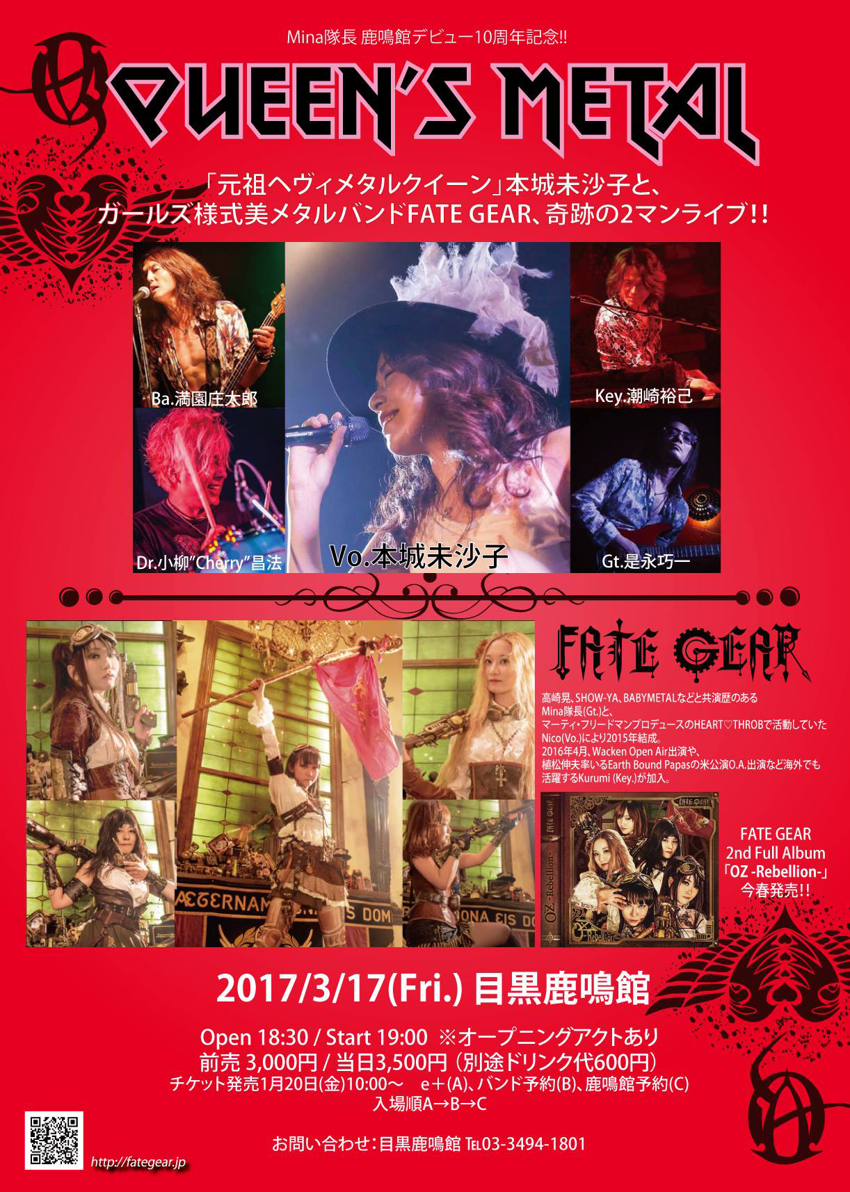- 【NEWS】3/17目黒鹿鳴館『Queen’s Metal』(本城未沙子・FATE GEAR)開催