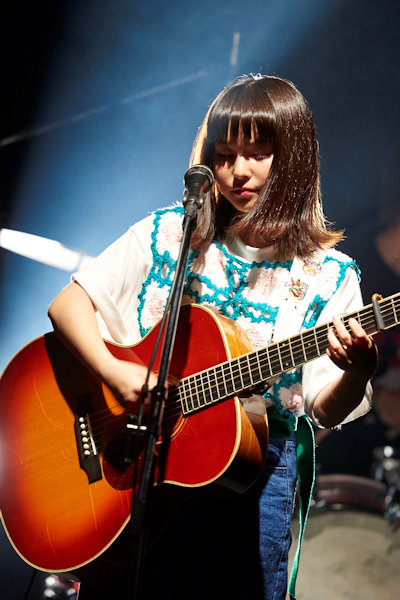 これまでは弾き語りのライブがほとんどだったという坂口有望だが、この日はドラム・ベース・ギターのサポートメンバーとともに、自身は初のエレキギターでのパフォーマンスも披露。インディーズでリリースしている「おはなし」、「地球-まる-」、メジャーデビューシングル収録の「好-じょし-」に加えて未発表曲や新曲を演奏した。
