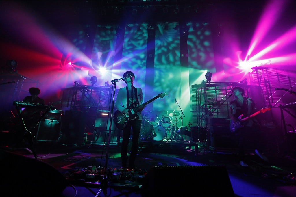 突如、暗転したままの会場にふいにギターの調べが鳴り響いたかと思うとファルセット混じりの歌声が続く。そこにはなんとすでに光村が。光村の姿が暗闇から浮かび上がるとそのままニュー・シングル「夢1号」のイントロへ。古村、坂倉、対馬のコーラス・ワークが重なって荘厳なハーモニーが出現し、会場の空気を一気に塗り替えていった。初披露された11月のZEPP TOKYO公演からライヴを重ね、4人のコーラス・ワークはさらにふくよかな広がりを見せるようになっていた。