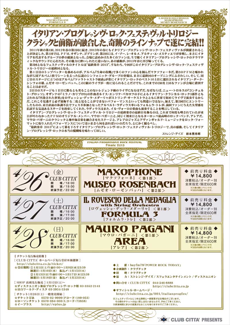 - 【公演行こうぜ!】イタリアン・プログレッシヴ・ロック・フェスティヴァル2013