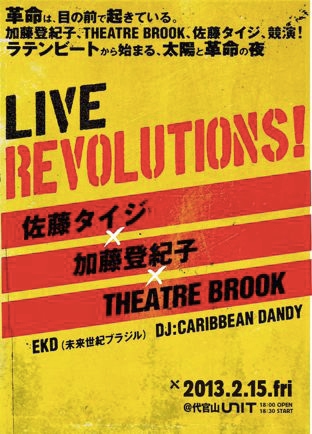 2012年、太陽光での「THE SOLAR BUDOKAN」を大成功させた佐藤タイジ(THEATRE BROOK)と、社会と交わり続ける歌手 加藤登紀子の初のライヴハウス共演が決定!加藤登紀子のヒット曲「百万本のバラ」も演奏されることが、既に決定されており、武道館でのゲスト共演を経た二人のリハーサルも順調に進行中だ。