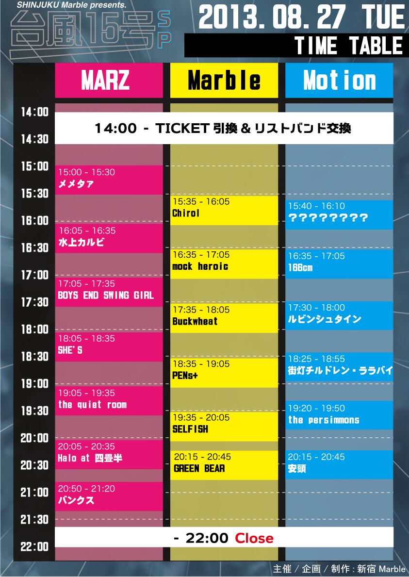 NEW!! ・2013年8月27日(火)【新 宿】Marble/MARZ/motion(3会場往来自由)