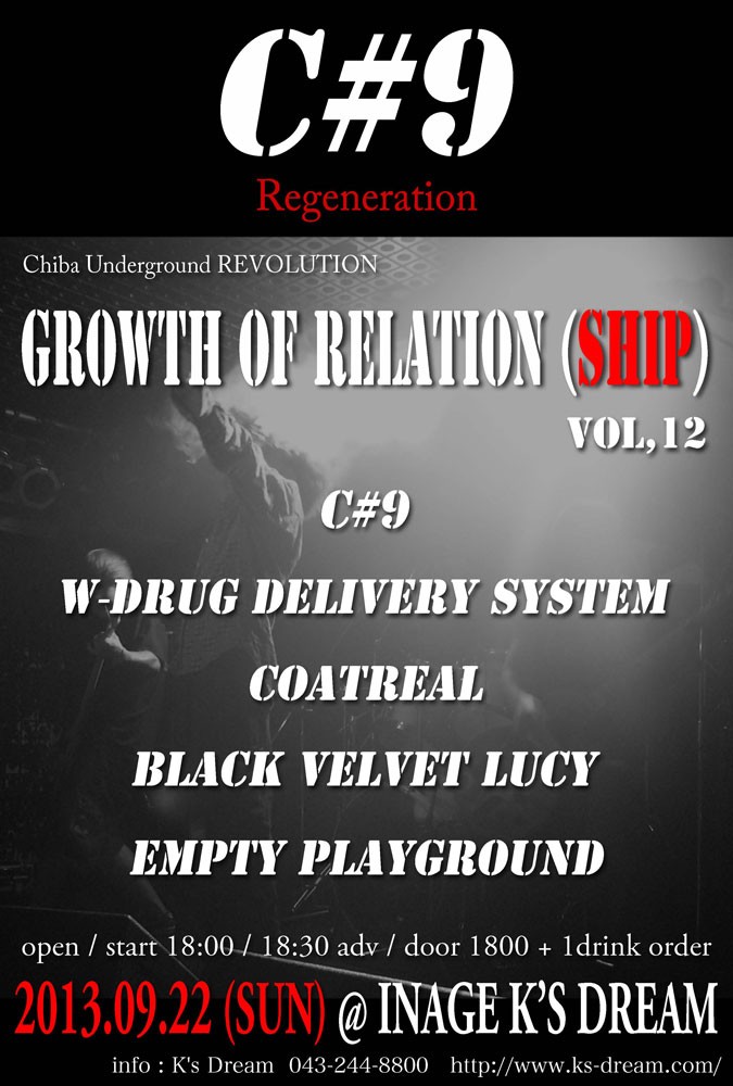 僕たちには、過ごして来た時代がある・・・”あの頃”に憧れた”あのステージ”に立っていた男達が帰って来た!千葉エモーショナルの雄”C#9″が遂に再結成!2000年前期から後半までを駆け抜けた彼等の魂のステージを刮目せよ!解散ライブでは最前で涙した俺が言うんだから間違いない!今回は当時から繋がりのあるメンツを集めてのお祭り騒ぎになりそう!そしてもう一つの目玉が柏の”Empty Playground”の一日再結成!現在Pink-HOUSEでも活動中のGu.ツヨシが在籍していたバンドです!時代を超え存在する”音”を聴け!