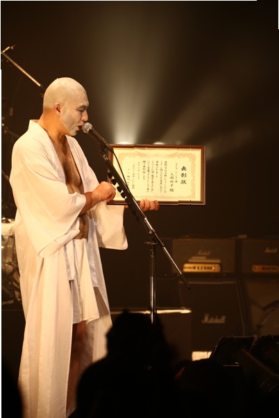 本日・1月18日、人間椅子の東名阪ツアー「バンド生活二十五年 ~猟奇の果~」のファイナル公演が渋谷・TSUTAYA O-EASTにて開催されたが、それに先立ち人間椅子が「BEST FUNDOSHIST AWARD 2013(ベストフンドシスト賞2013)」に選出され、一般社団法人 日本ふんどし協会(http://www.japan-fundoshi.com/)から表彰を受けた。