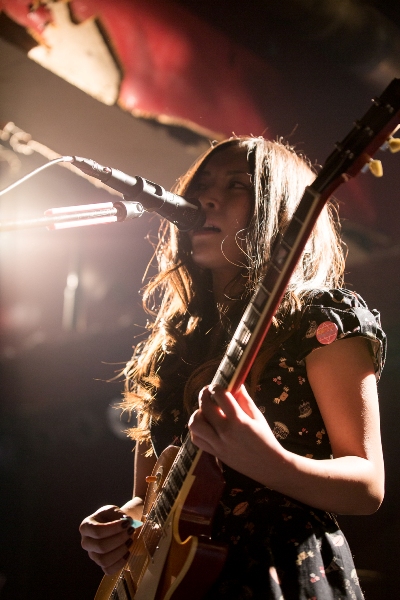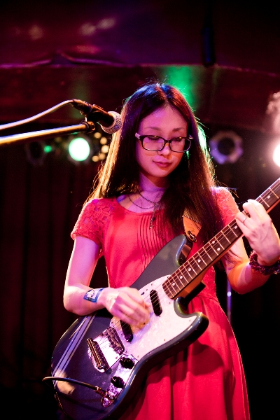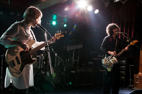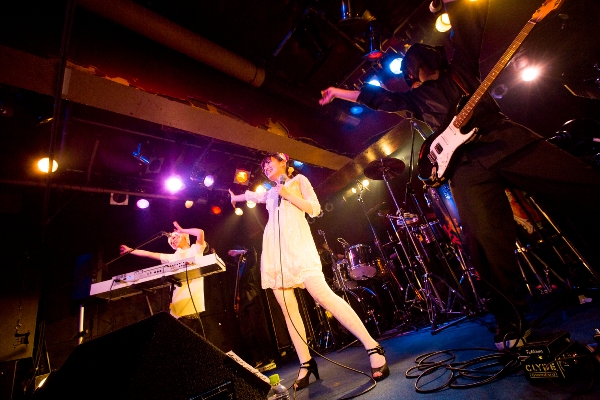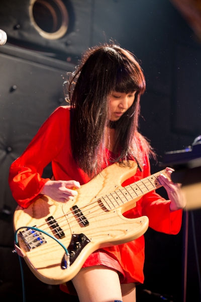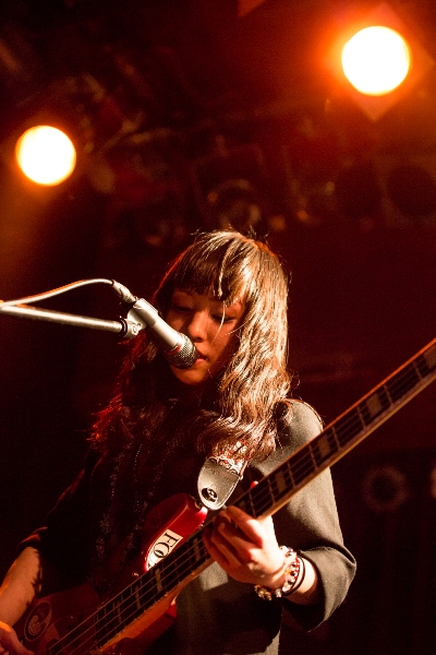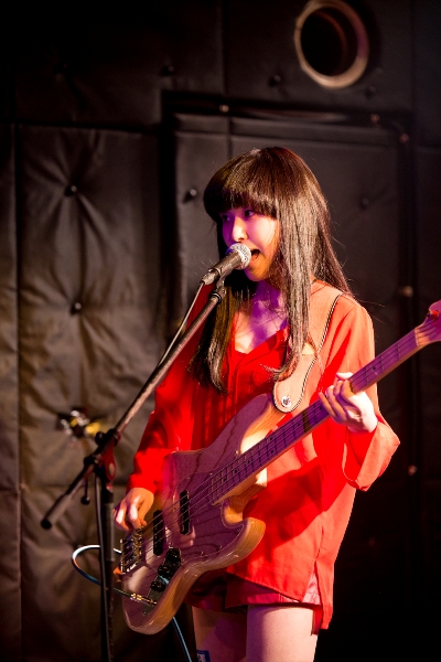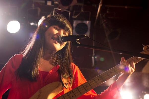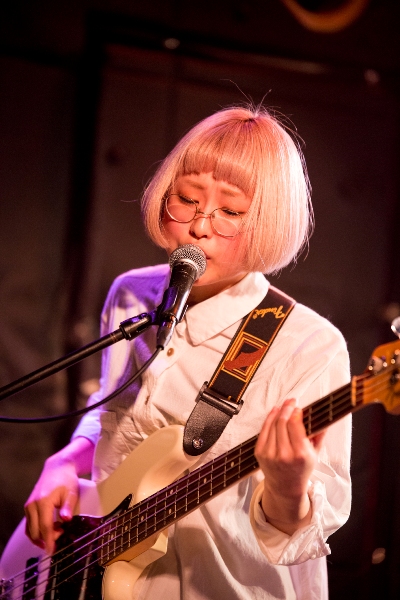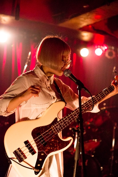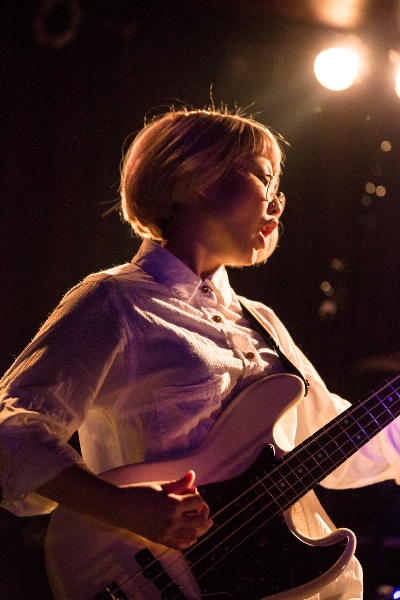 1曲目「Fever」では中央に座するayumi melodyのメインボーカルに、四弦を抱えスラッと立つアイカワエリナのコーラスも加わり、さらに4人のちょっぴりダークなロックサウンドで魅せる。3曲目「そういうこと」は清涼感あふれるサウンドにのびやかなボーカルを乗せる。曲ごとに変わる表情に、ぐいぐい引き込まれる。