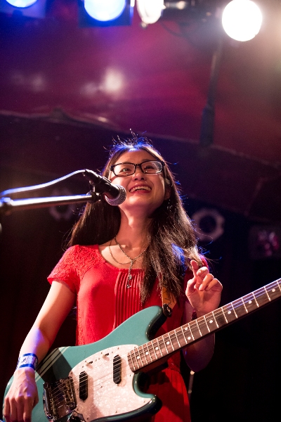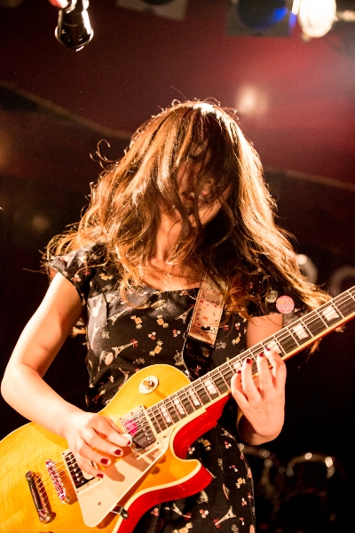 そんな和やかな空気にしばし浸ったところで、怒涛の後半戦。さはらのギターが鋭く切り裂く。4曲目は「深い不快な眠りについて」。日常に横たわる不快感、ダークさを巧妙に表現したこの曲も、『フカシンリョウイキ』4曲目に収録されている。音に合った詩なのか、詩に合った音なのか、いずれにせよ彼女たちにしか作り出せない言葉と音が一体となった世界観だ。