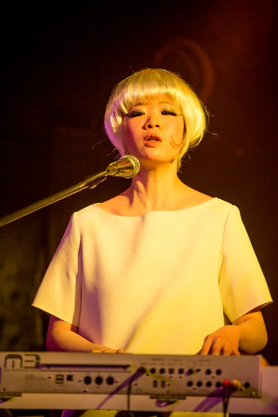 ステージがまだ暗いうちから、既にそのバンド名の通りの”アブノーマル”さが醸し出されている。アレックスたねこ(Vocal)、テナ・オンディーヌ(Keyboard)の女性メンバー2名と、黒子姿に身を包んだサポートギター、ベース、ドラム、パーカッションの4名がセッティング。3組目はKioon Musicの新人発掘オーディション「キューン 20 イヤーズオーディション」ファイナリストとしてデビュー前から注目を集めた惑星アブノーマルだ。