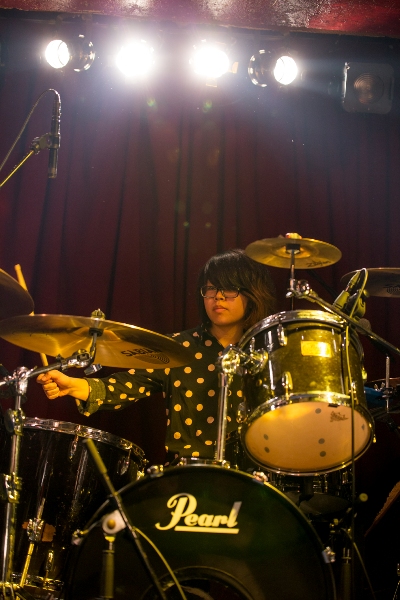 1組目に登場したのは2011年9月に結成した3ピースロックバンド、FOOLA。そのギターの歪みに、メロディアスな歌声に、激情を込める山下マサキ(Vocal & Guitar)。長髪を振り乱し、バスドラの威力と同様に全身で重低音を表現する横堀ユウコ(Drums)。コーラスの優しさとベースプレイの強さとが同居するミステリアスなプレイヤー、白石アユミ(Bass)。3人の個性が爆発するサウンドには、「オルタナ」「ガレージ」…そういったジャンルの括りをぶっ壊す力強さと奥深さがある。