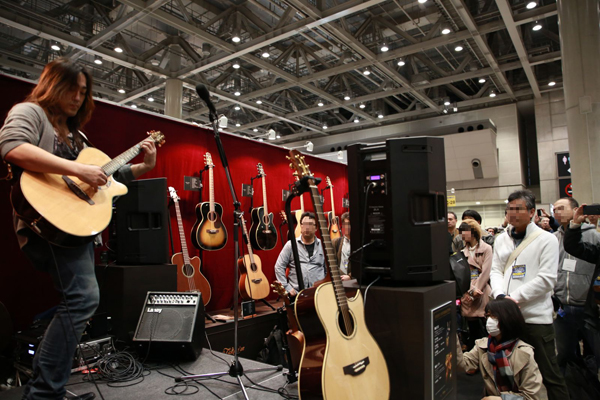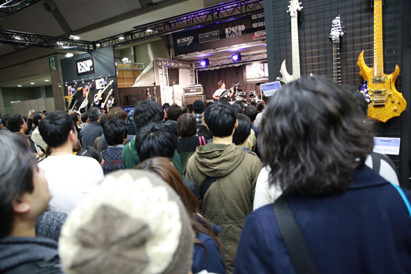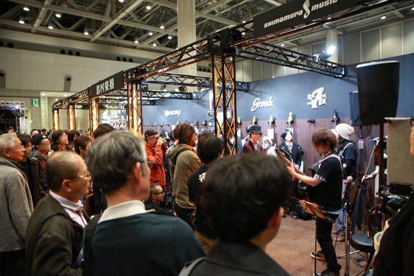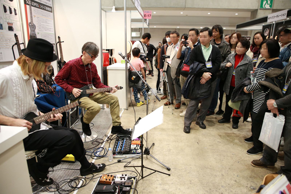 弦楽器・管楽器・アコースティックギターゾーンから、カスタムビルダーゾーン、エレキギター・打楽器ゾーンへと進む間に、有名アーティストのデモ演奏が各所で催され、さながら路上ライブかライブハウスの様相。