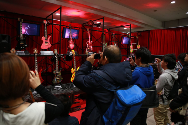 両展示とも常に多くの人が取り巻き、スマホで思い思いに記念写真を撮影していた。会場内の各ブースにも、有名アーティスト使用モデルの展示がなされ、注目を集めていた。