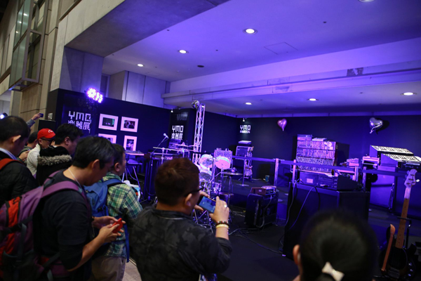 展示ホール内特設ステージの目玉は2つ。ひとつは、YMOワールドツアー35周年企画「YMO楽器展」で、1979年ロスアンジェルスでの初の海外公演のライブセットを再現したもの。